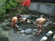 混浴露天風呂に入っている美形ギャルカップルの彼氏の死角に座り勃起チ◯ぽを見せつける